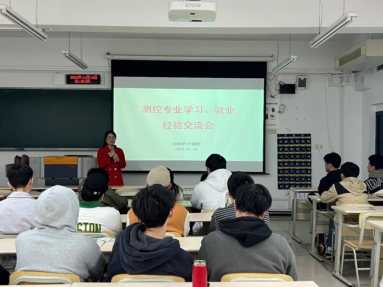 2023年11月14日星期二下午四点,测控专业在博智楼07502举行了学习、就业、考研经验交流会。为了让21级大三的同学了解后面的时间如何去学习和准备就业,考研等,交流会邀请了两位20级已经和上市公司签约开发岗的大四学长与大三同学分享经验。