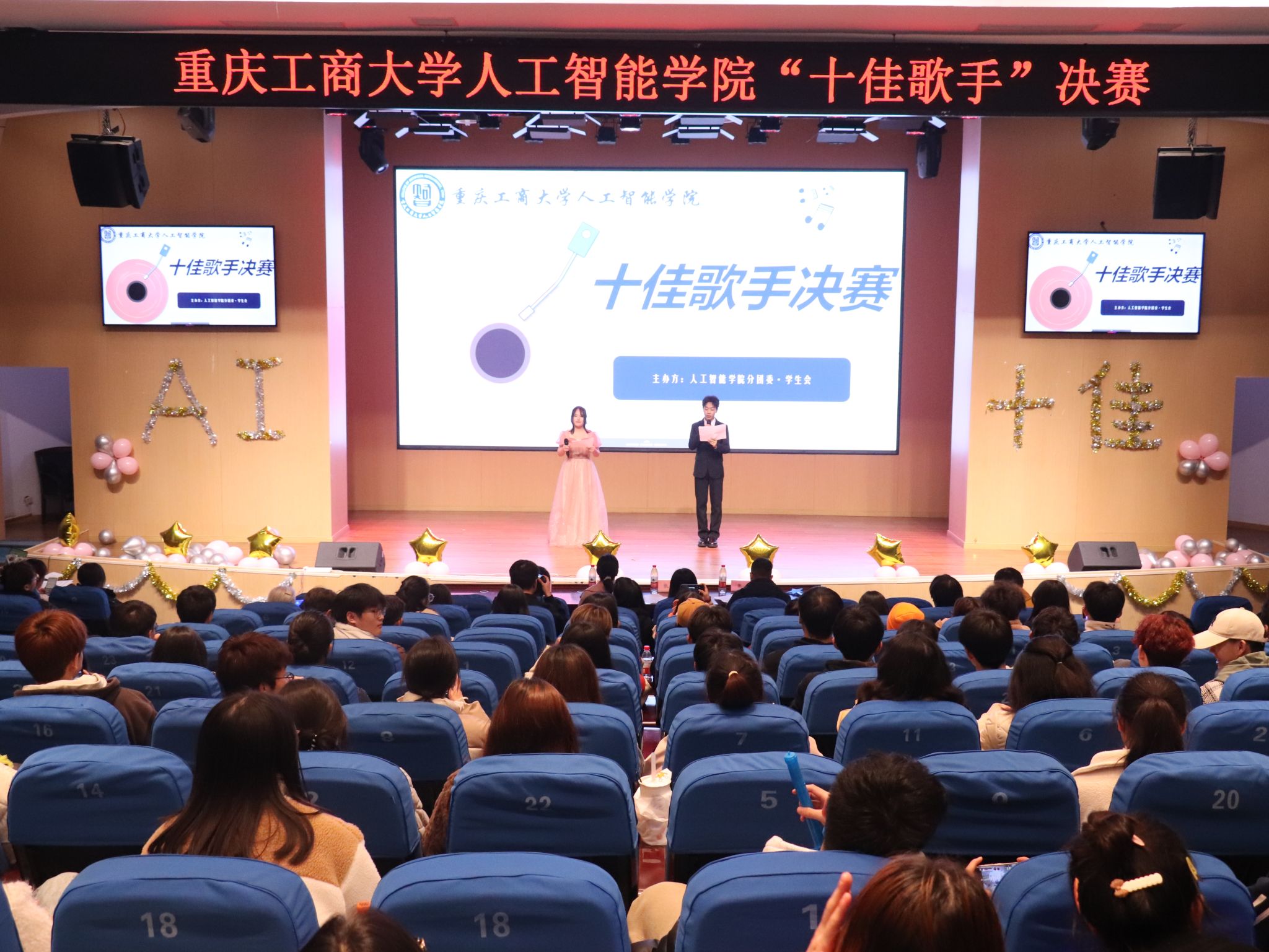 为丰富公司员工课余文化生活,积极营造活跃、和谐的校园文化氛围,12月8日晚,由伟德国际victor1946分团委员工会承办的伟德国际victor1946十佳歌手大赛决赛在南岸校区明智楼110100举办。公司党委副书记张未,学工办主任向巧,辅导员张鑫,20自动化一岳鹏举和20计算机肖洋出席并担任此次评委,决赛由来自文艺部的张天启和李佳漪主持。