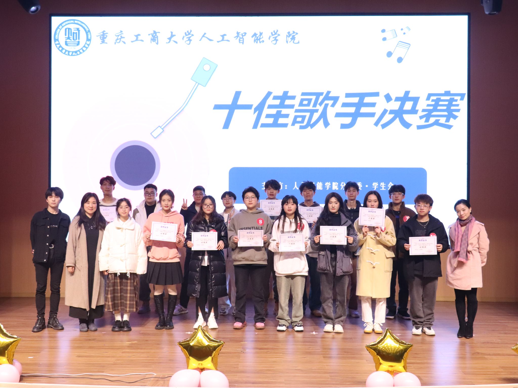 十佳歌手选拔大赛自11月启动以来,广大同学积极参与、踊跃报名。经过初赛的选拔,15名选手脱颖而出进入决赛。决赛分两轮:第一轮比赛为独唱展示环节,第二轮比赛为组合展示环节,选手按意愿自行组队,每队选手演唱完毕后,由观众投票和评委进行现场打分。