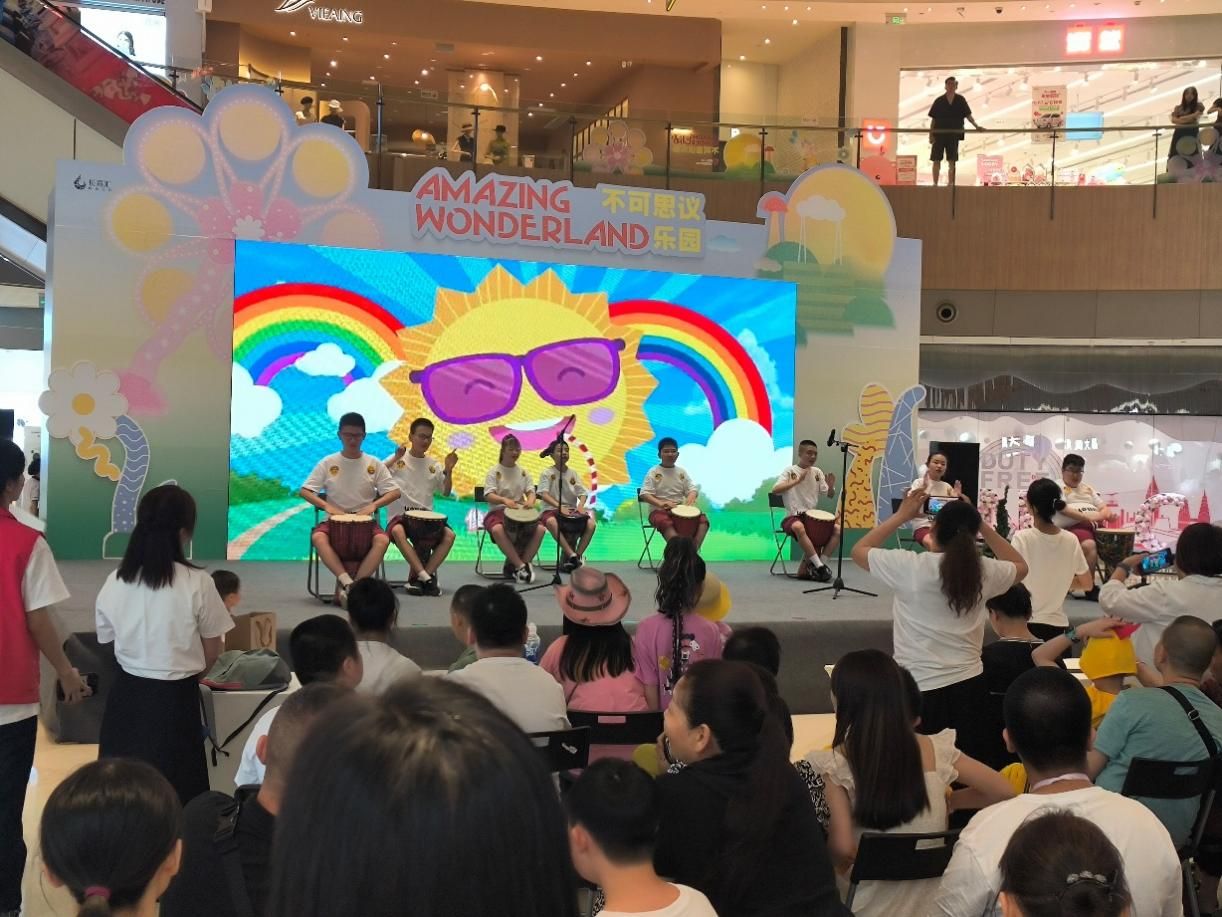 图为小朋友们表演非洲鼓《你笑起来真好看》