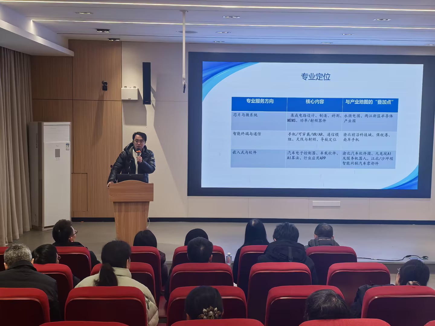 电子信息工程系副主任晏力介绍了专业以服务重庆“33618”现代制造业集群体系为定位,打造“校企联合、科教融汇、竞赛培育”的人才培养模式。