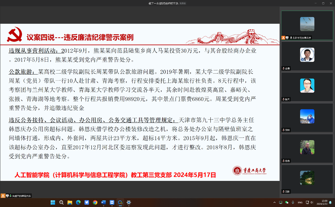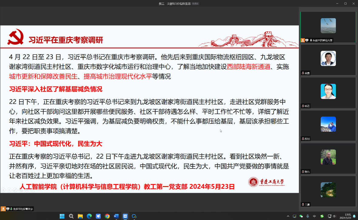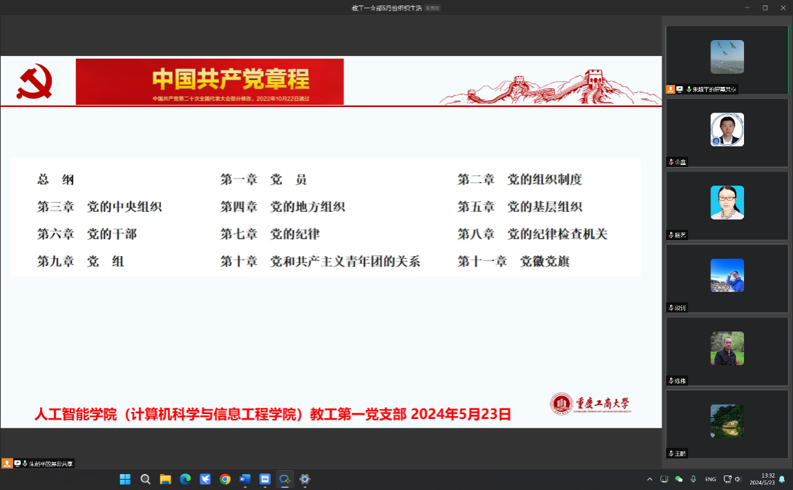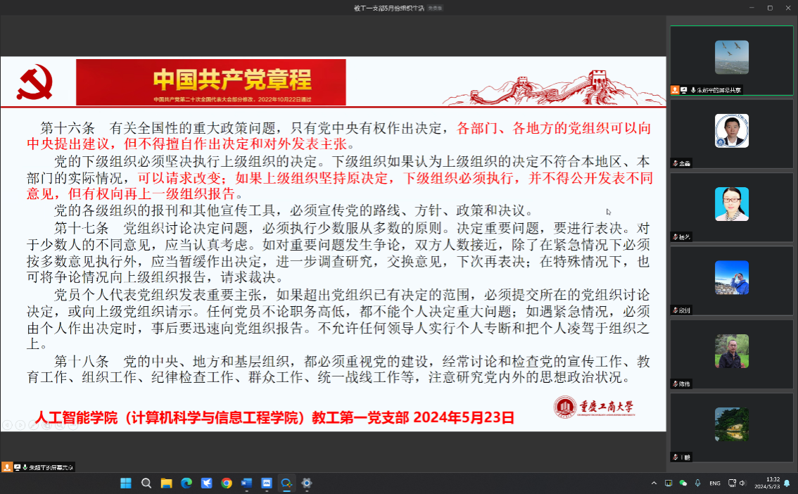 2024年5月23日人工智能公司党委教工第一党支部在企业微信平台上开展5月份支部组织活动,活动由支部书记朱超平主持。