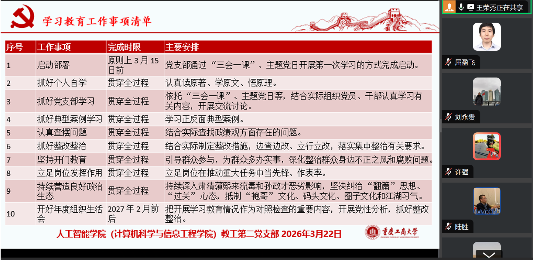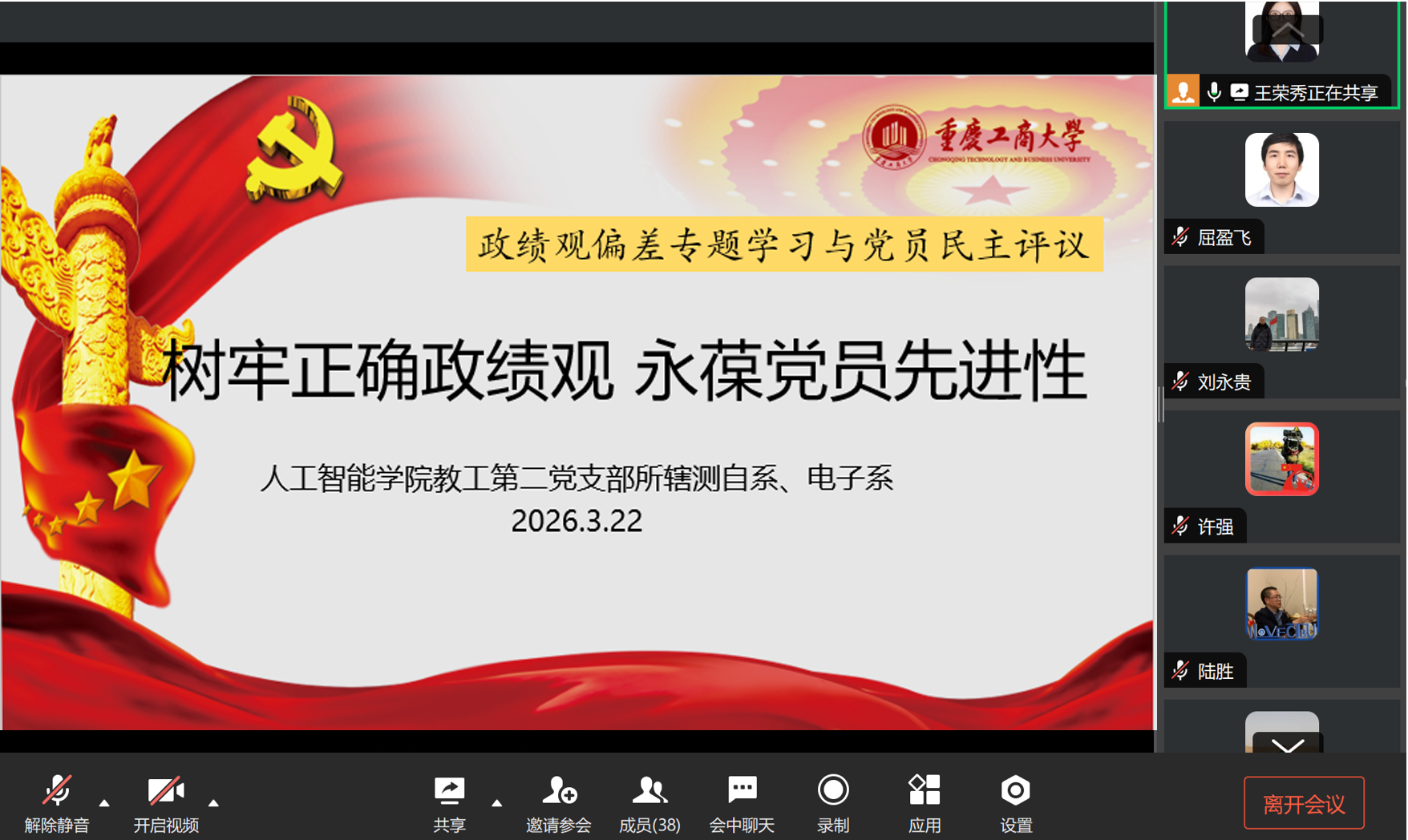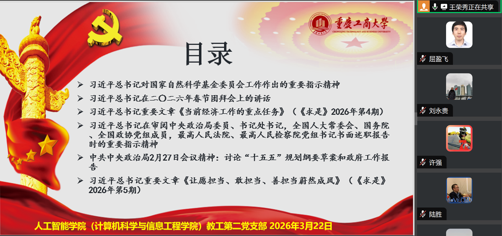 2026年3月22日晚上8点,伟德国际victor1946教工第二党支部通过企业微信线上直播的形式,开展本月组织生活。本次会议由王荣秀书记主持,教工第二党支部所辖的测自系和电子系全体教师参加。